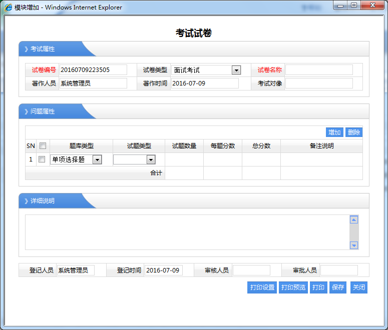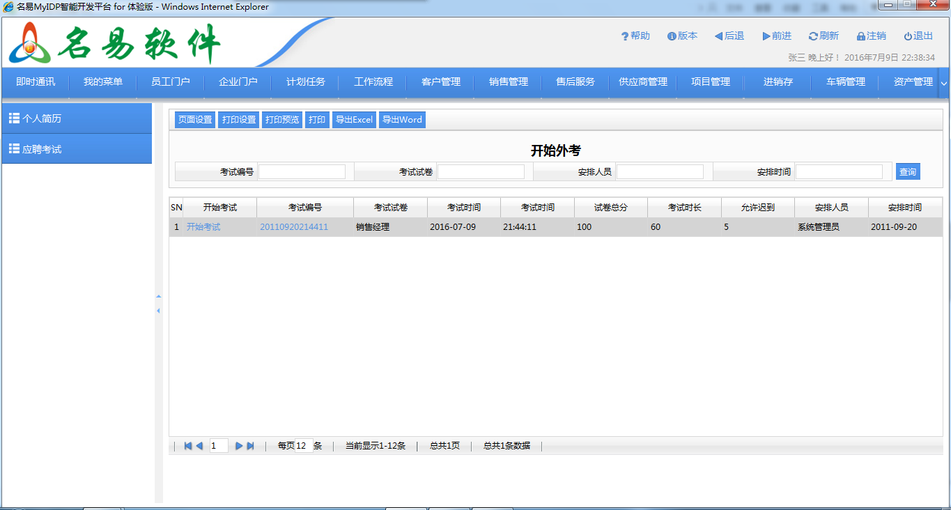 考试管理就是对外部人员、内部员工进行考试,以及对考试进行阅卷及得分的管理。