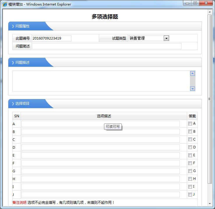 1、试卷名称:就是选择试卷的名称,该单选择题是属于那个试卷的。