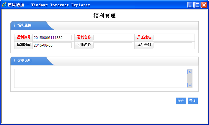 1、员工姓名:选择那个职员获得此福利。