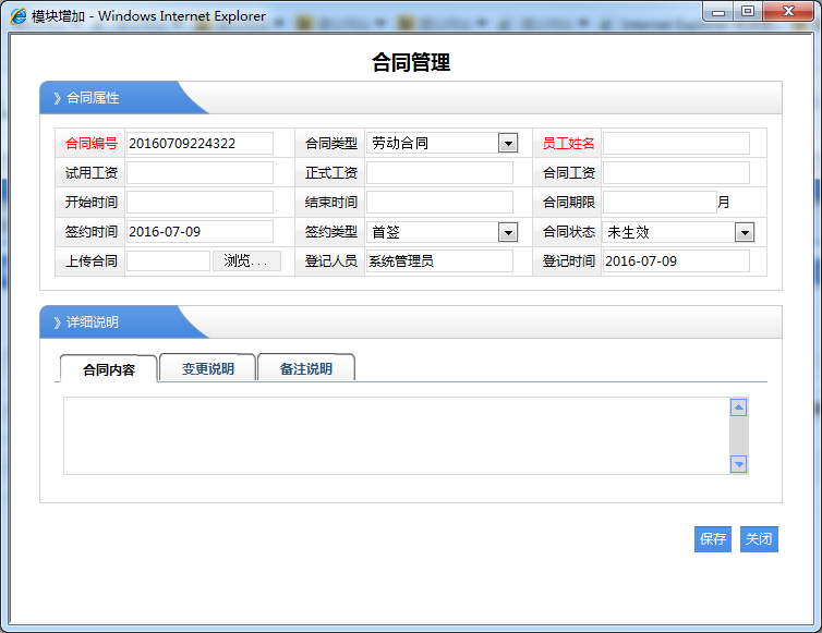 1、员工姓名:选择那个职员进行的签定的合同。