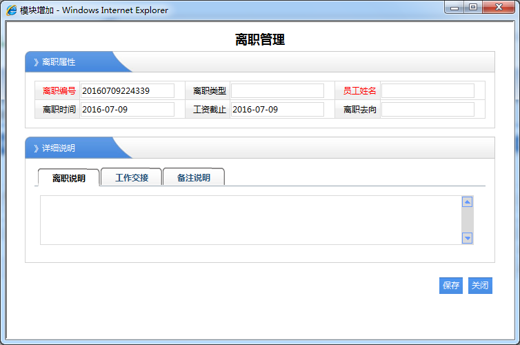1、员工姓名:选择那个职员进行的离职登记。