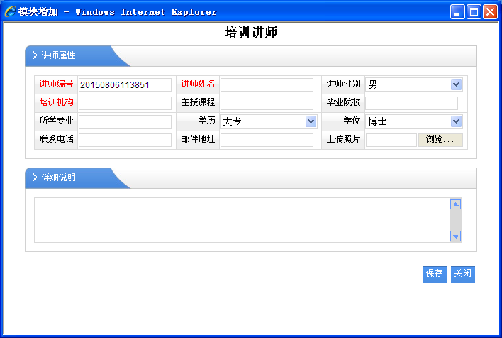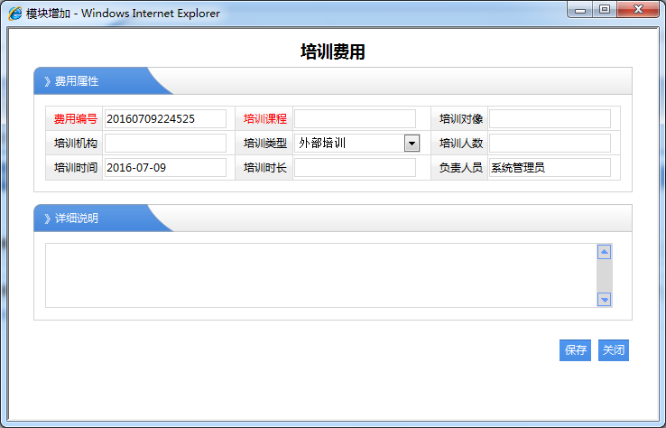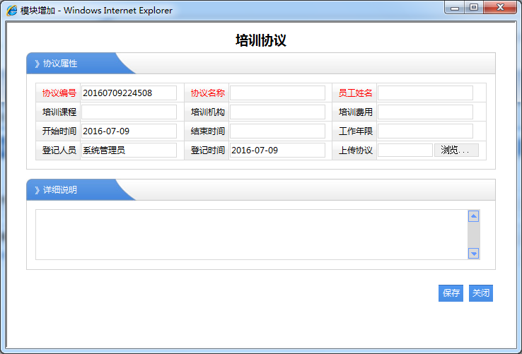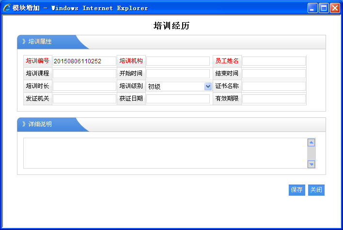 1、员工姓名:必须选择对应的职员名称,那么该培训经历是就属于该职员的。