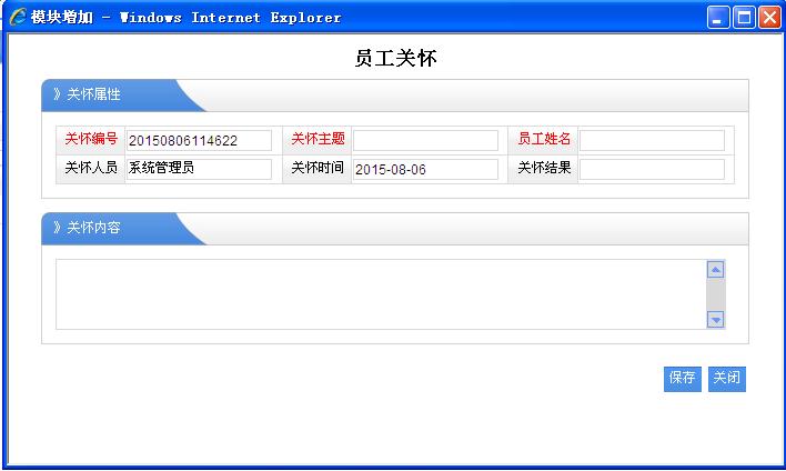 1、员工姓名:选择对那个员工进行的关怀。