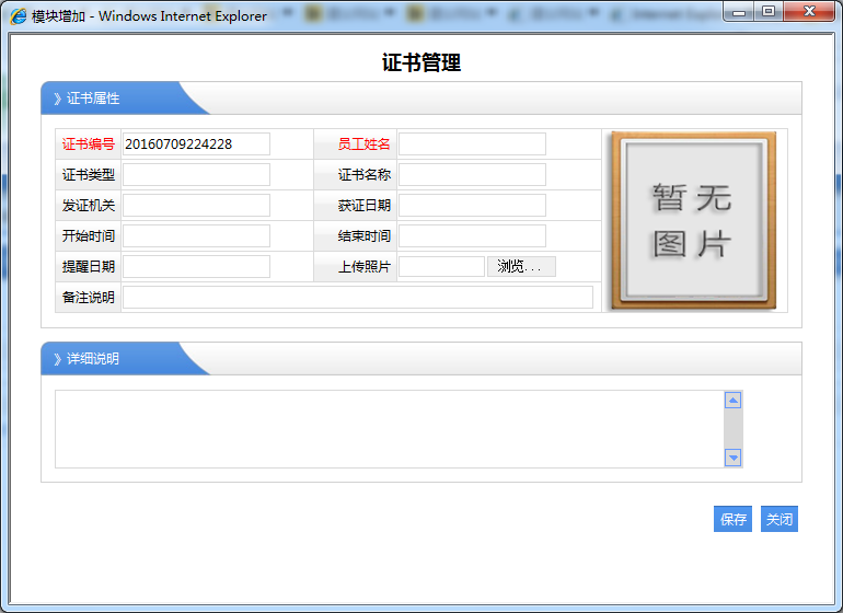 1、员工姓名:必须选择对应的职员名称,那么该证书是就属于该职员的。