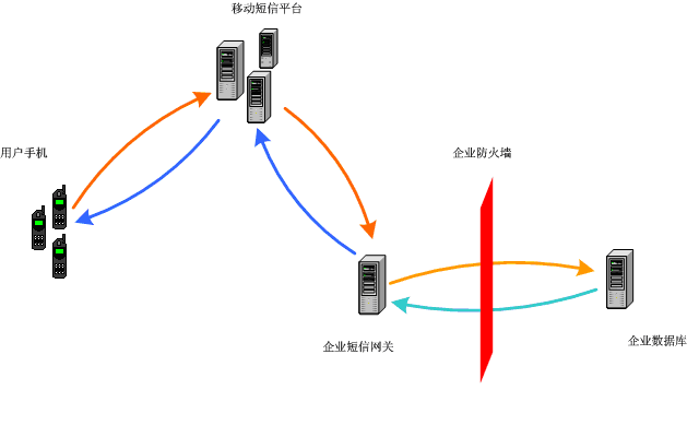 注:详细客户端DEMO请联系客服索取。 第三章 环境要求3.1.网络拓扑图  3.2.环境要求本节将详细说明正确发送/接收短信的前提条件: 确保企业服务器端可以通过http上网 确保企业服务器端有固定IP, 如需要,可对企业方的IP进行鉴权