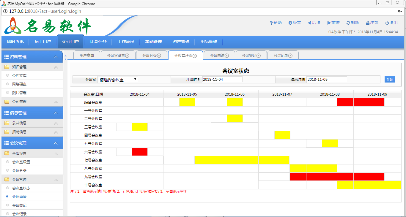 会议管理 会议室状态,会议申请,会议登记,会议记录