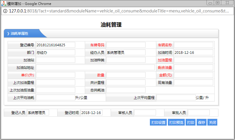 油耗管理 对车辆加油的管理,以及统计每公里油耗