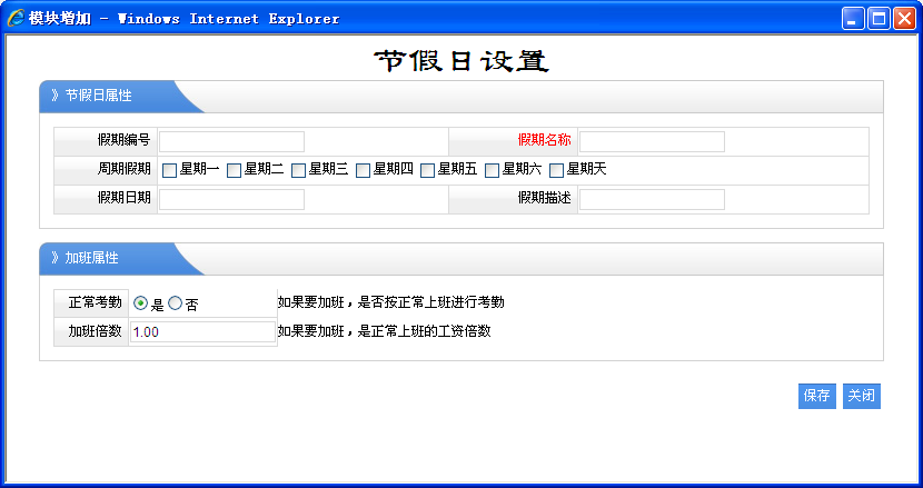通常是对一年内有那此节日进行设置,在这里主要是对节假日期间不进行考勤,以及如果在这期进行加班的处理。