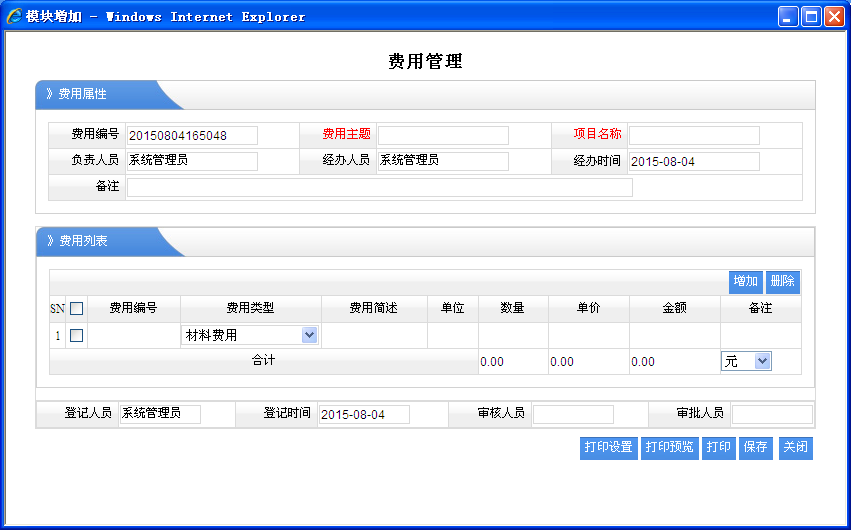 操作功能:页面设置,打印设置,打印预览,打印,增加,删除,明细,导出EXCEL,导出WORD,审核,反审核,审批,反审批等功能。