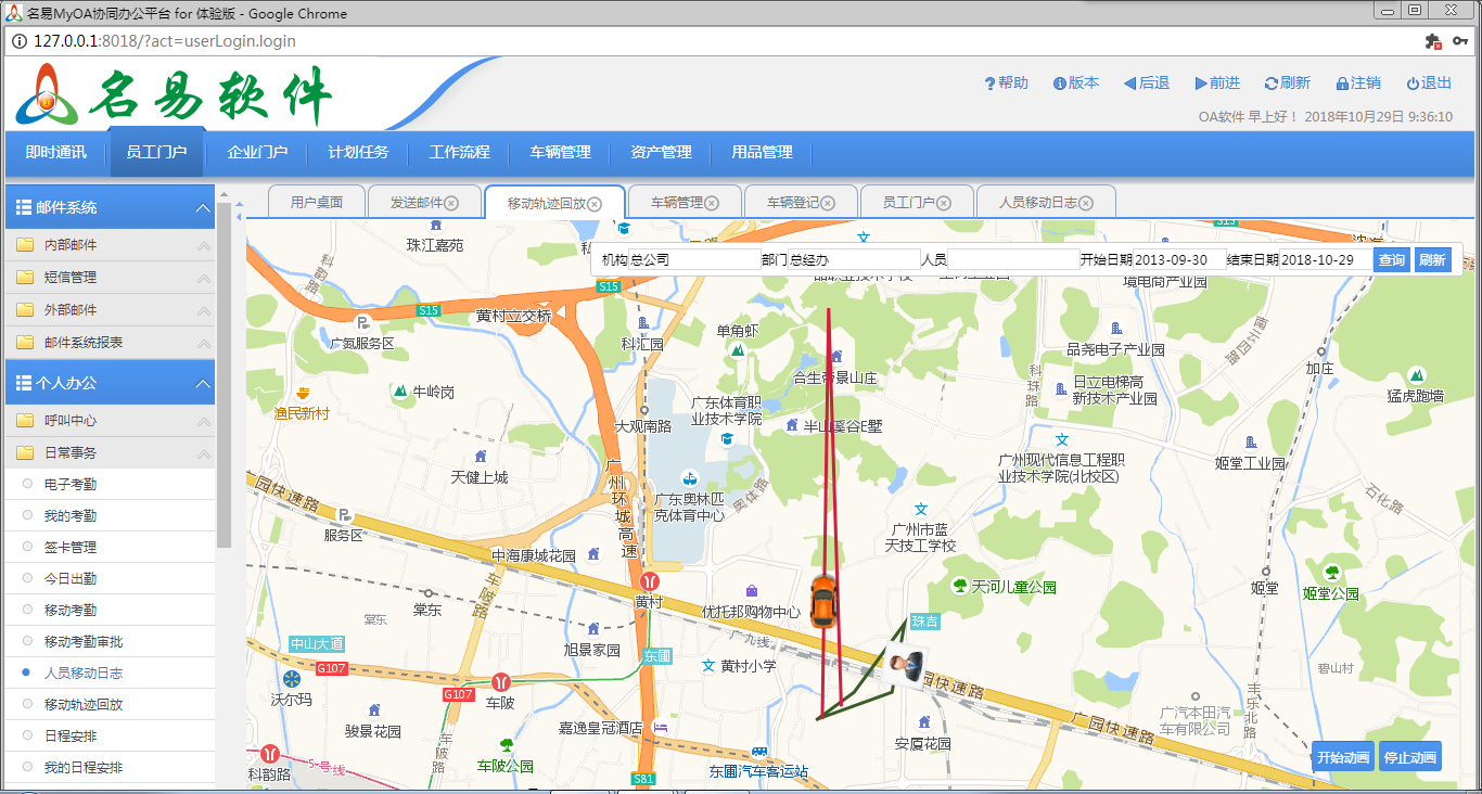 7、移动日志:外出人员走到那里都轨迹定位,知道外出人员行动踪迹